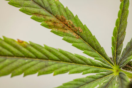Moldy leaf of marijuana flower from wet greenhouse