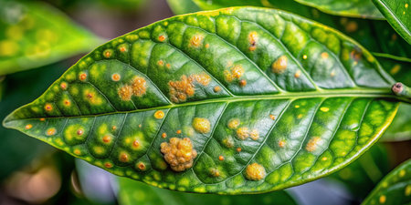 Macro Photography: Citrus Leaf with Asiatic Canker Disease – Xanthomonas axonopodis pv. citri Infection