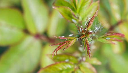 Green and pink aphids on roses. Pests damage the plant and spread disease