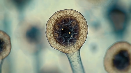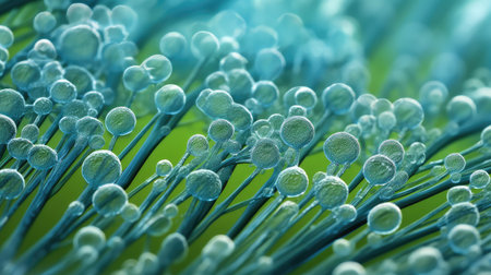 Microscopic fungi Cunninghamella, scientific 3D illustration. Pathogenic fungi from the order Mucorales, cause sinopulmonary and disseminated infections, one of the causative agents of mucormycosis