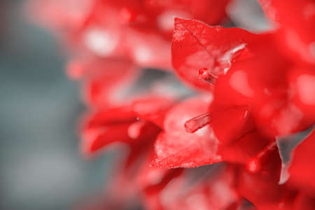 Photography taken in a garden of the bougainvillea plant with red flowers in a garden.