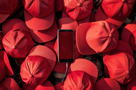 Lots of red caps and a smartphone.