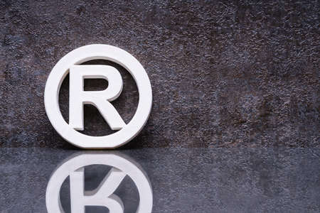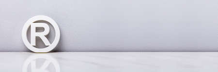 Close-up Of White Registered Trademark Sign Near Documents Over Desk