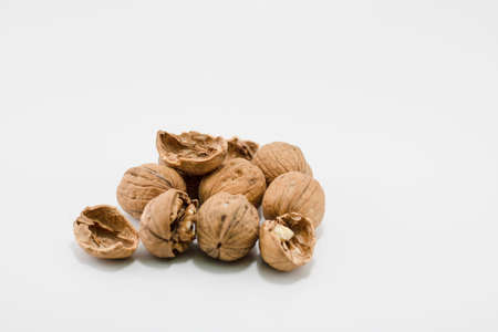 Walnuts on a white background