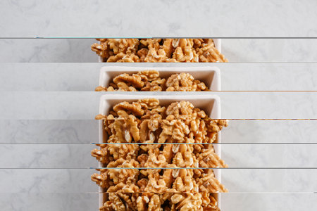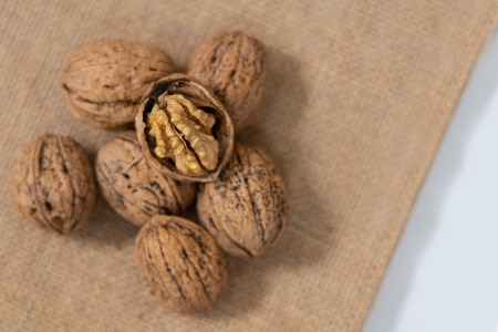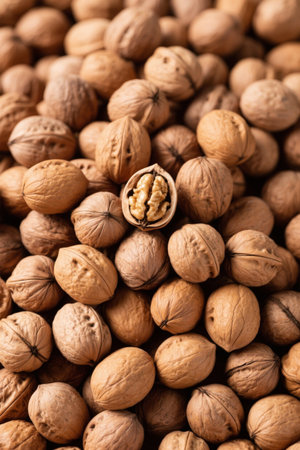 Natural walnuts in a top view, creating a wholesome background