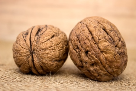 Heart shape walnut on the wooden background