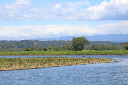 Tarcoles river delta; beautiful colorful sunset in Costa Rica;