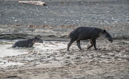 Tapir taking a bath in Corcovado with brood, Costa Rica