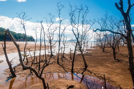 Dead tree on a sandbank in the estuary of the Rio Platanal Panama