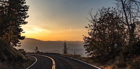 Road in the mountains at sunset, California, USA. Travel and adventure concept.