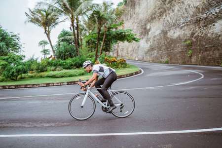 Athletic mans cycling road bike