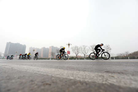 LUANNAN COUNTY, Hebei Province, China - November 23, 2019: Cyclists are trying to move forward, on a Road cycling competition site.