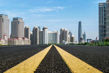 Asphalt road skyline and modern buildings landscape