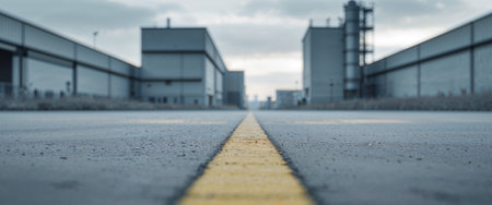 AI Generated. Modern Industrial Complex with Yellow Marked Road