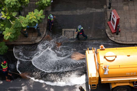 BANGKOK, THAILAND - July 3 Bangkok authorities are helping to clean the roads in the city on July 3, 2012, Bangkok, Thailand