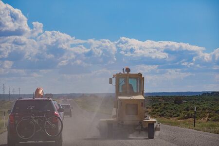 Page, MAY 14: Driving on a dirt road of construction site on MAY 14, 2019 at Page, Arizona