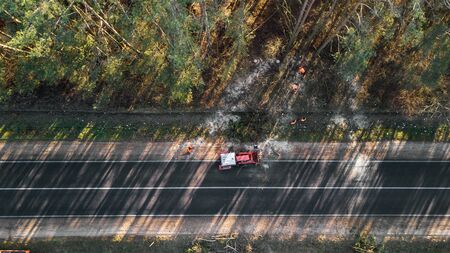 clearing the roadside of bushes and trees along the road top view