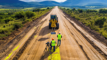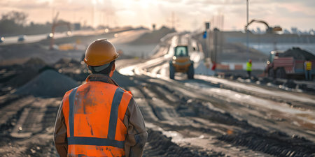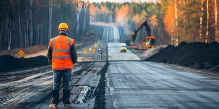 Civil engineer overseeing road construction for safety and quality on an expressway project. Concept Expressway Construction, Civil Engineering, Road Safety, Quality Control, Project Oversight
