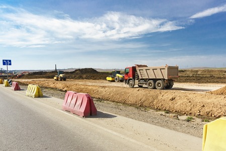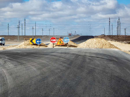 Road construction site. Road under construction. Road repair. Road works.