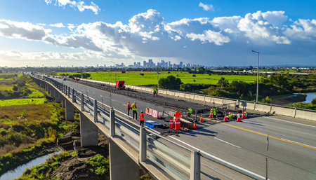 Highway Renovation: Workers and Machines in Action