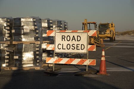 Road closed sign for work construction heavy equipment