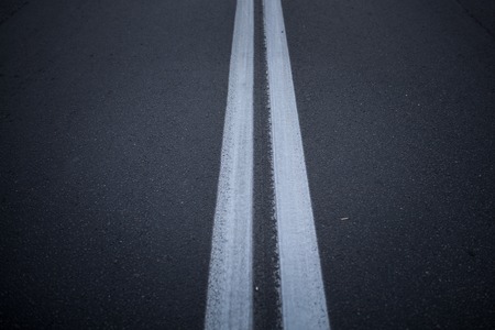Asphalt road with marking lines white stripes. Two solid lines Perspective