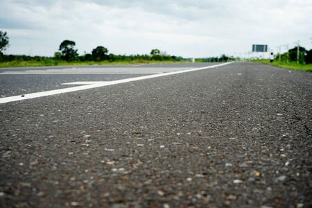 Asphalt road with yellow line in the evening, Bangkok, Thailand