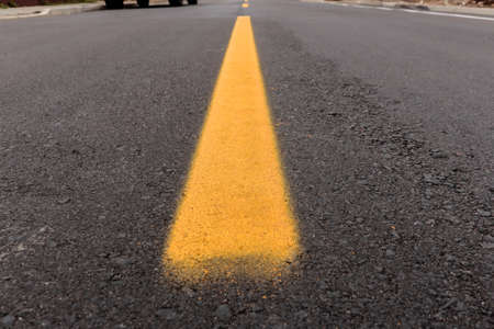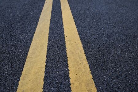 Yellow line on asphalt road texture background. Abstract yellow line on asphalt road.