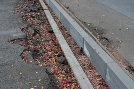Replacing concrete curbs on the sidewalk road.