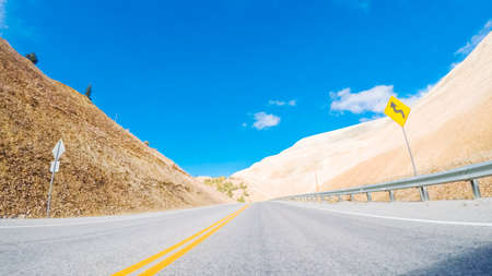 Road in the mountains at sunset, California, USA. Travel and adventure concept.