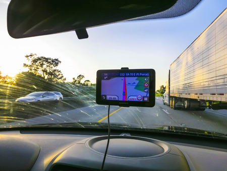 Miami, USA - April 29, 2018: The Navigation system in the car at Miami, USA on April 29, 2018