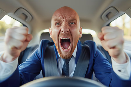 Man having car accident or traffic jam, Hatred and arguments and anger, Stress in rush hour traffic.