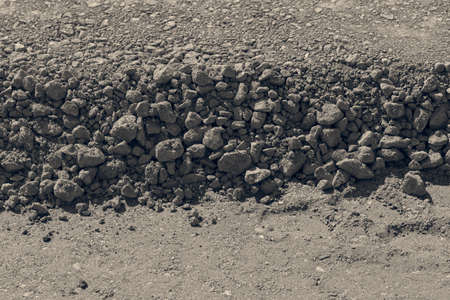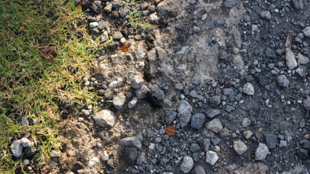 Terrain small road with small rocks on the ground viewed from near the ground. Can be used as a background, texture or wallpaper. Can be used as a concept of dead, dirty, recoverable, ecology, etc