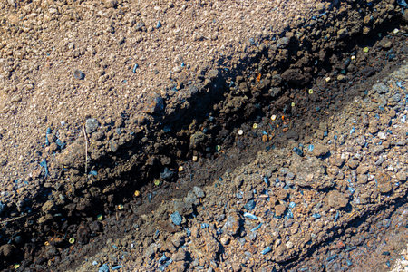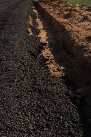 Beneath the asphalt. Layer of soil beneath the asphalt road.