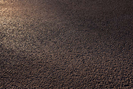 Explore this abstract close-up image showcasing a gravel line on a smooth asphalt surface, highlighting natural textures and earthy colors.