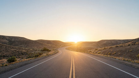 AI Generated. Sunset on the Open Road with Clear Horizon