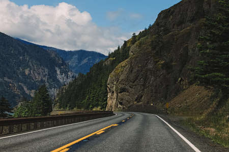 Highway in the mountains. Beautiful landscape with empty asphalt road.