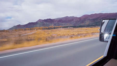 Driving on mountain highway 67 to Colorado Springs in Autumn.