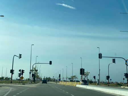 Dubai, UAE - November 29, 2018: The area next to the water park Wild Wadi. Street Wild Wadi Service Rd Dubai.