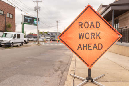 Road work ahead sign on street