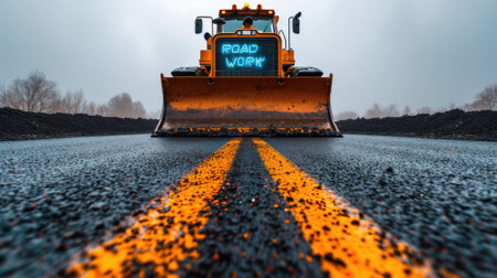 Street resurfacing. Fresh asphalt construction. Bad road, Generative AI