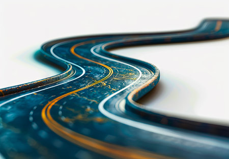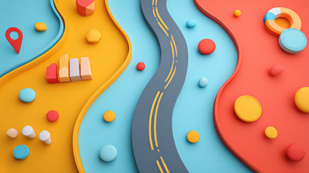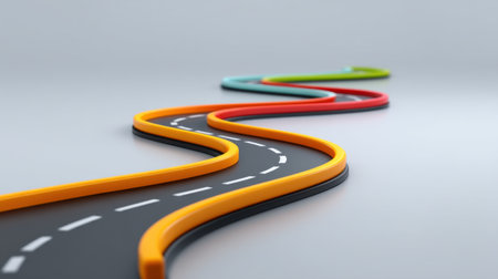This abstract image features a colorful winding road design, showcasing vibrant curves on a smooth surface, symbolizing creativity and exploration in life