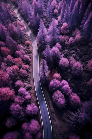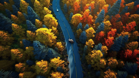 Generative AI : Aerial Drone View of winding road at Black Forest in autumn BadPeterstal BadenWurttemberg Germany