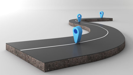 Routes of travel and final destinations ,Aiming for each destination when traveling. ,slanted road .,3d rendering