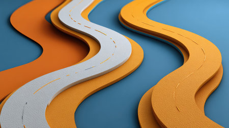 Discover a visually striking abstract design of wavy roads in vibrant colors, perfect for modern art, graphic projects, or creative backgrounds.