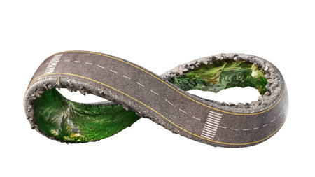 Road repair concept. Road in form of infinity sign with different road conditions on a white background. 3d illustration