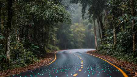 Digital Data Flow On Forest Road, Cyber Global Communication And Coding With Graphic Vision