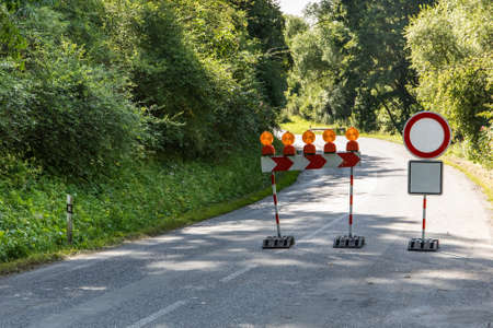 Traffic signs and country roads in Czech Republic. No entry on a country road in the woods.Violation of traffic regulations