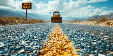 Desert Highway Stretching into the Horizon, Yellow Lines Guiding the Way through Majestic Mountains