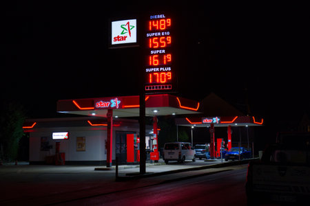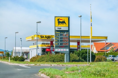 August 30, 2012 In Slovenia.Oil and gas filling on the road Sunny summer day